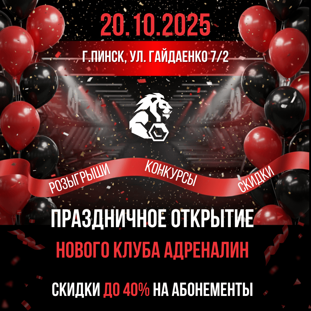 ✨20 ОКТЯБРЯ⚡️Открытие нового фитнес-клуба «Адреналин» в Пинске!🎉